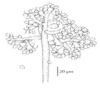 Schéma général de l’organisation des pinceaux de Penicillium, utilisée dans l’identification d’après Samson et coll