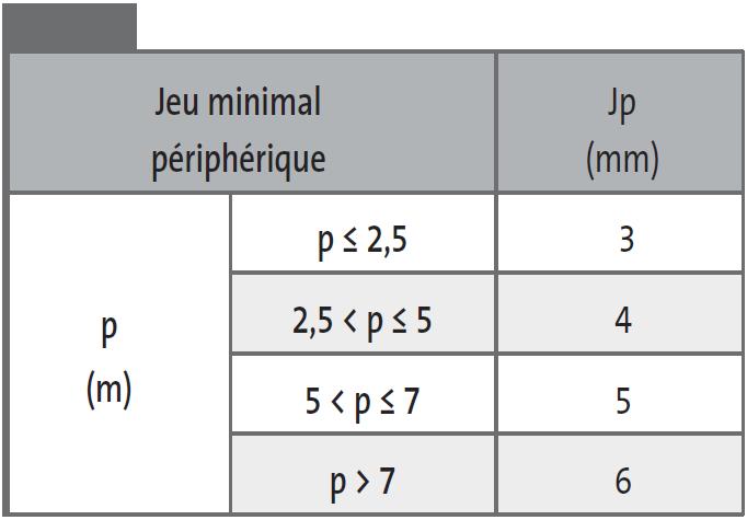 Les jeux minimaux sont mesurés après déformations éventuelles des supports.
