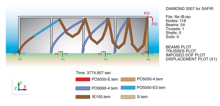 Figure 39 : Modélisation du portique dans le sens des poutres IE 105, feu ISO