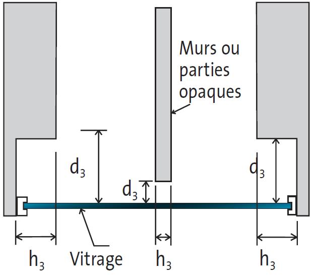 - la nature des parois au voisinage du vitrage (allège opaque, store, tenture, fenêtres coulissantes venant en superposition, etc.) ;