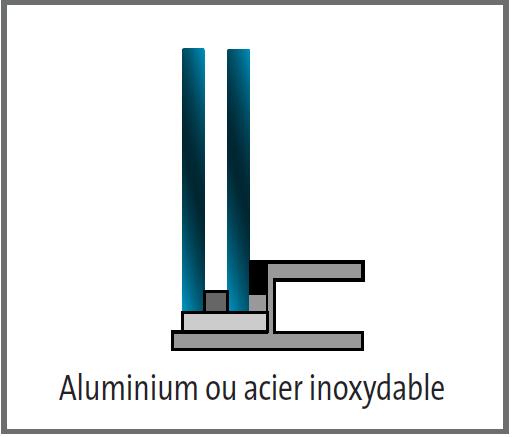 A droite : en aluminium avec ou sans rupture thermique sans aucun contact avec le gros oeuvre ou une charpente métallique lourde